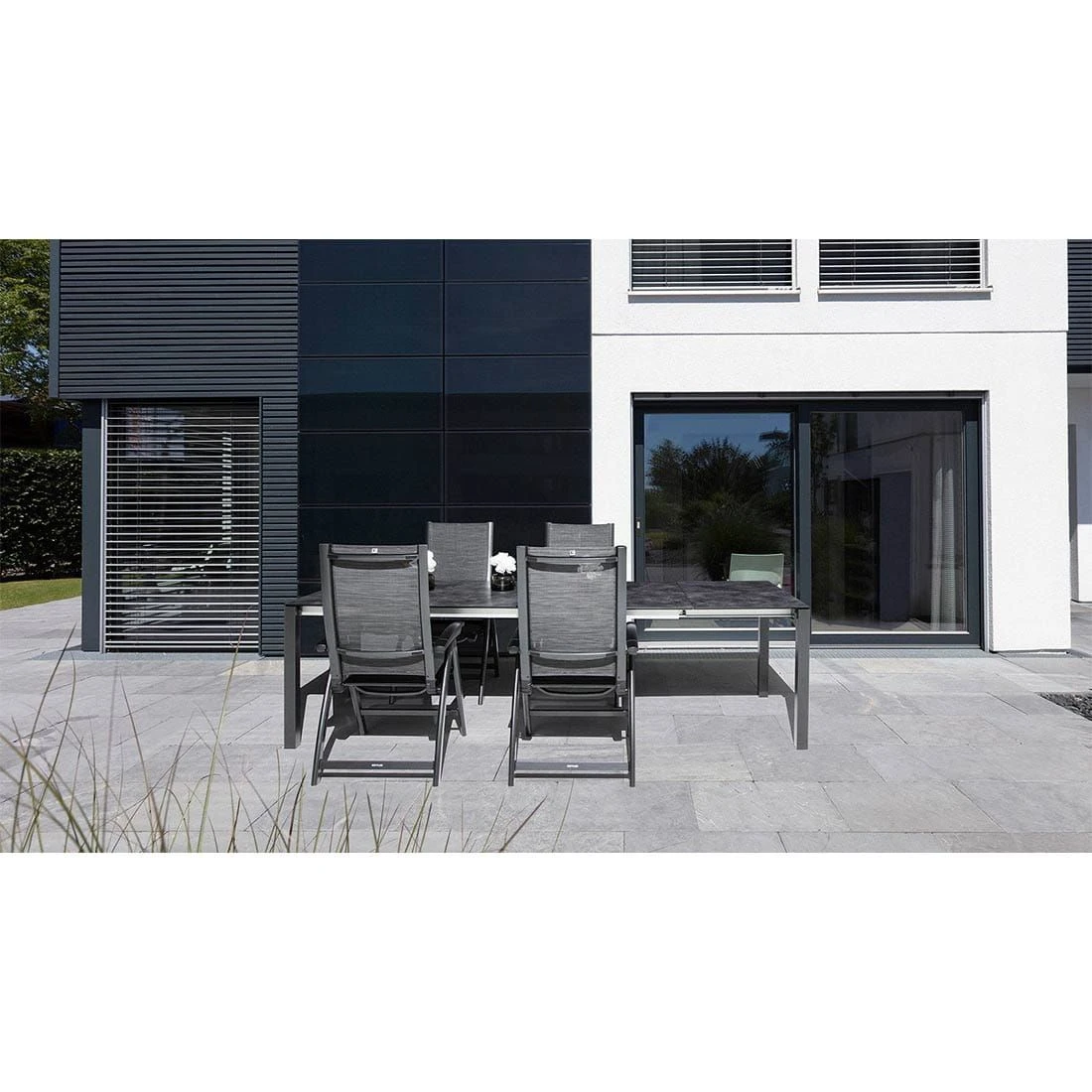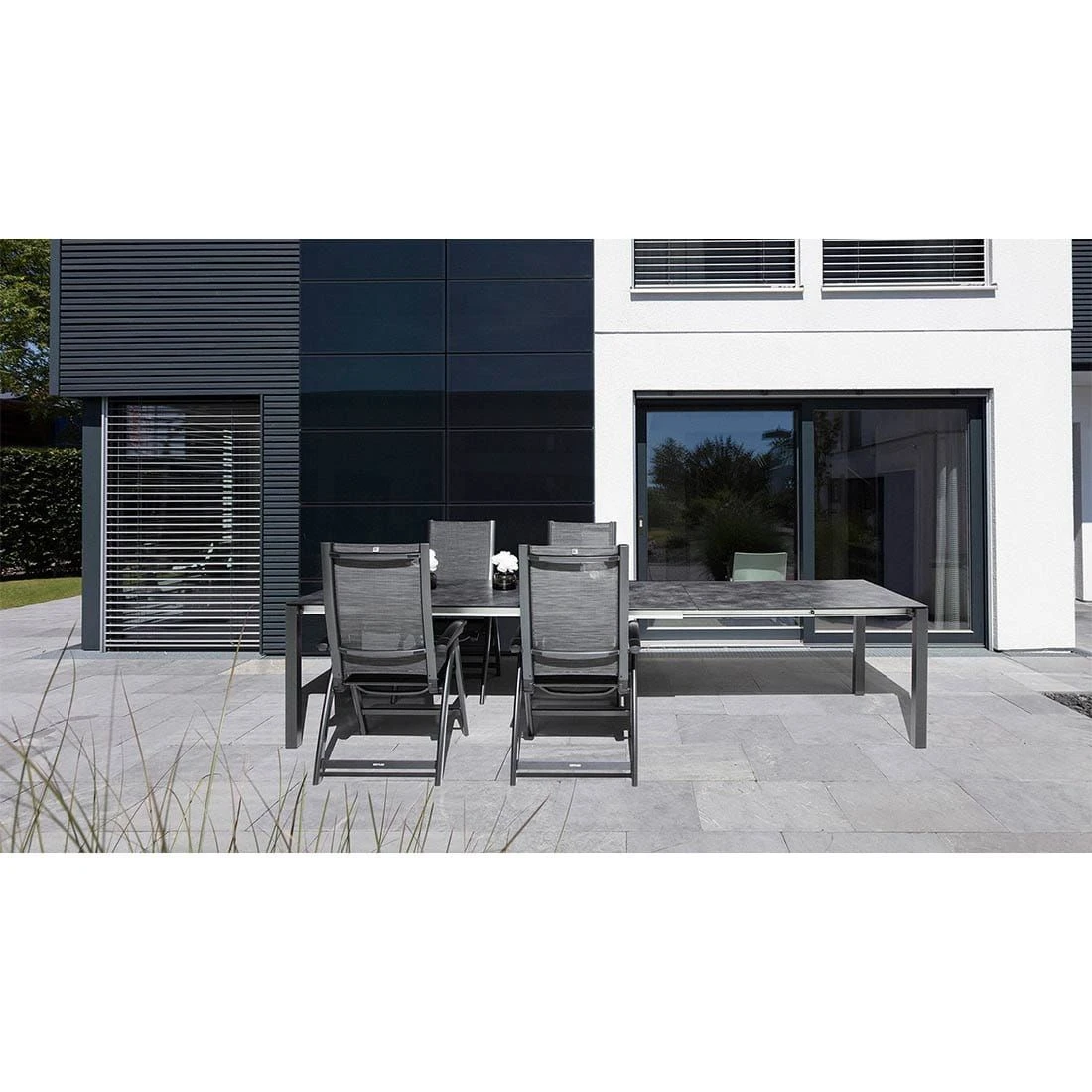 Aufgrund seines Gestells aus Aluminium zählt der Ausziehtisch Cubic zu den modernen Tischmodellen, die sich auf der Terrasse problemlos aufstellen und bewegen lassen. Die edle HPL-Tischplatte ist nicht nur ein optischer Hingucker, sondern besitzt auch eine sehr robuste und absolut kratzfeste Oberfläche, die sämtlichen Belastungen entgegenwirkt. Farblich sind Gestell und Tischplatte einheitlich gestaltet und begeistern in Anthrazit. Das klassische Vierfuß-Gestell garantiert Ihnen maximale Beinfreiheit. Die rechteckige Form ermöglicht es Ihnen, den Ausziehtisch in Ecken und an Häuserwänden platzsparend einzusetzen.