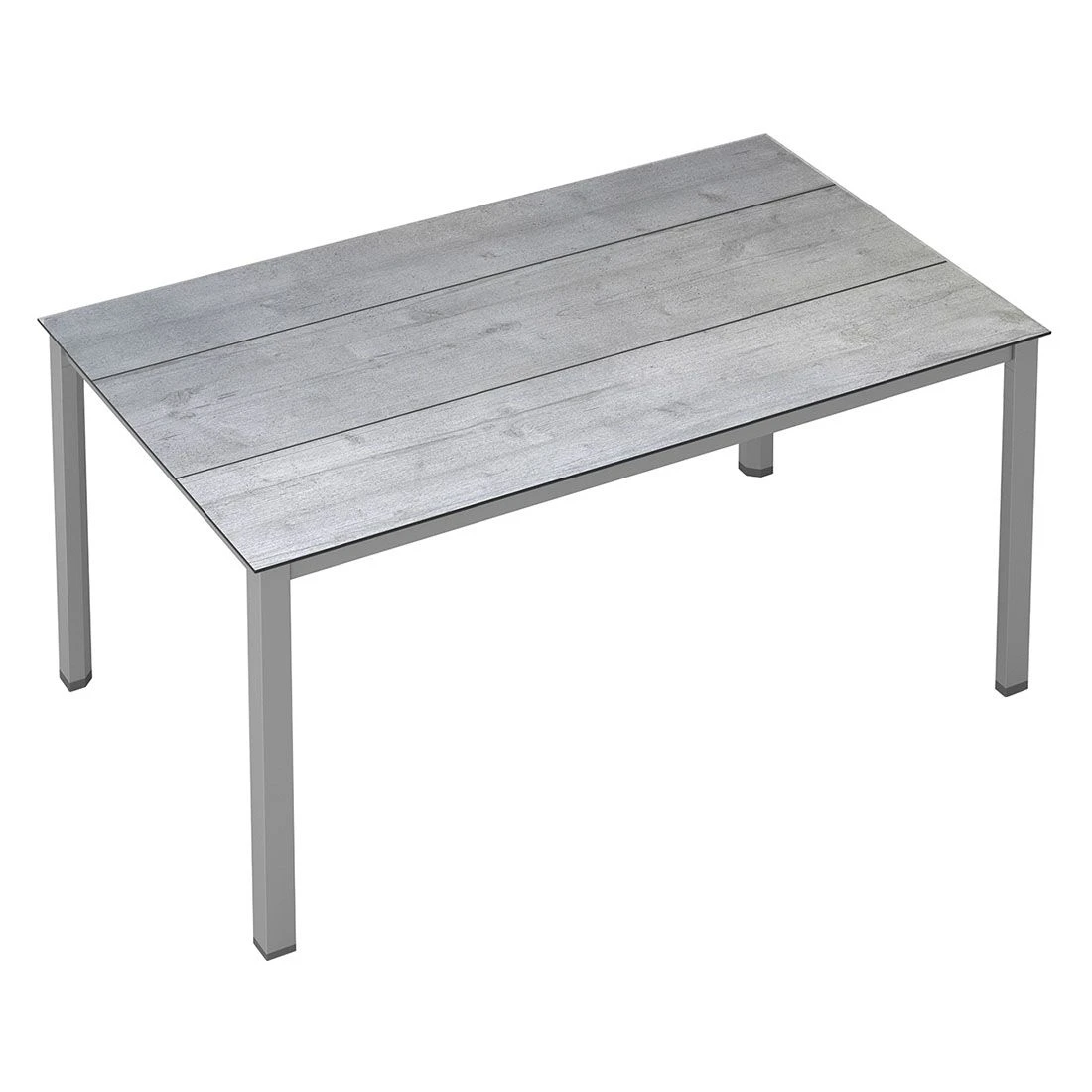 Das klassische Vierfuß-Gestell garantiert Ihnen maximale Beinfreiheit. Die stabile Tischplatte aus praktischem HPL-Kunststoffverbund ist im Besonderen für Veranstaltungen im Freien und das Essen draußen hervorragend geeignet. Für ein elegantes Gesamtbild erscheint die Platte in der Farbe Grau. Das Design des Gartentisches ist klassisch rechteckig gestaltet.