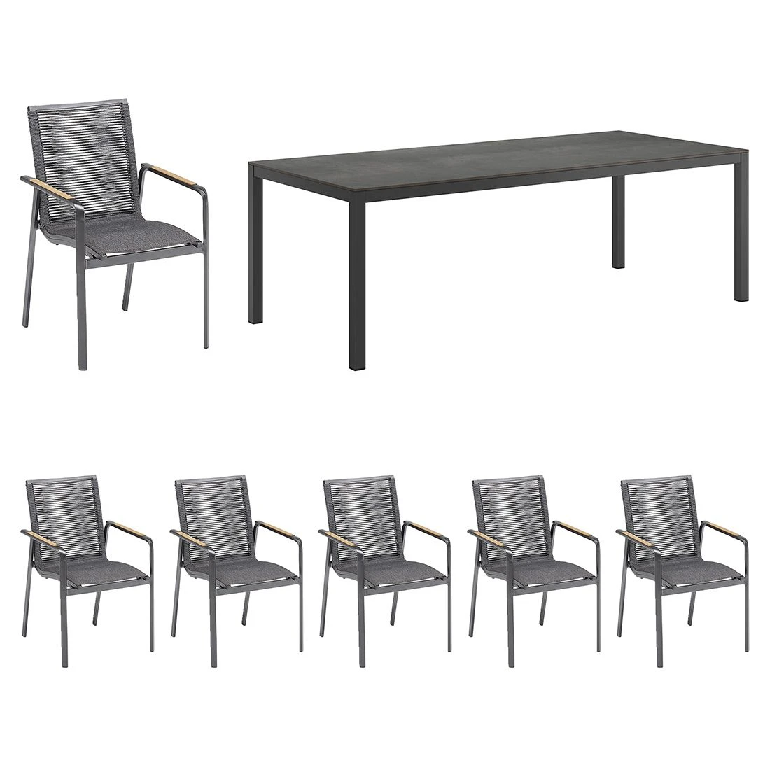 Die robusten Metallgestelle aus Aluminium sind pflegeleicht und garantieren gleichzeitig eine hohe Stabilität. Darüber hinaus gewährleistet dieses leichte Material, dass Sie die Möbel bequem transportieren können. Ein weiterer Pluspunkt der Sitzmöbel ist die Bespannung der Sitzflächen mit Textilene. Dieses Material zeichnet sich durch eine hohe Robustheit gegenüber Hitze und Frost aus und ist leicht zu reinigen.