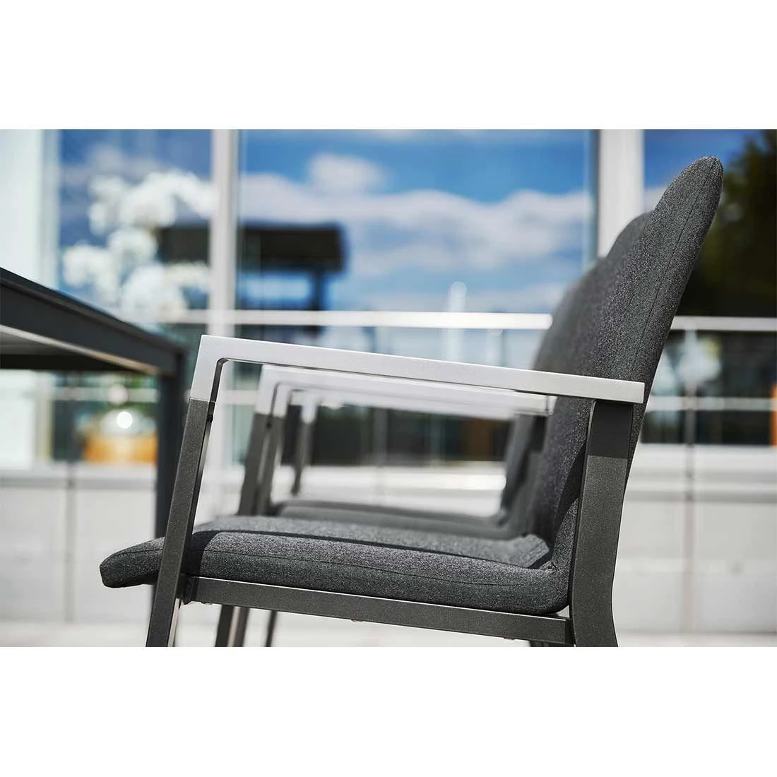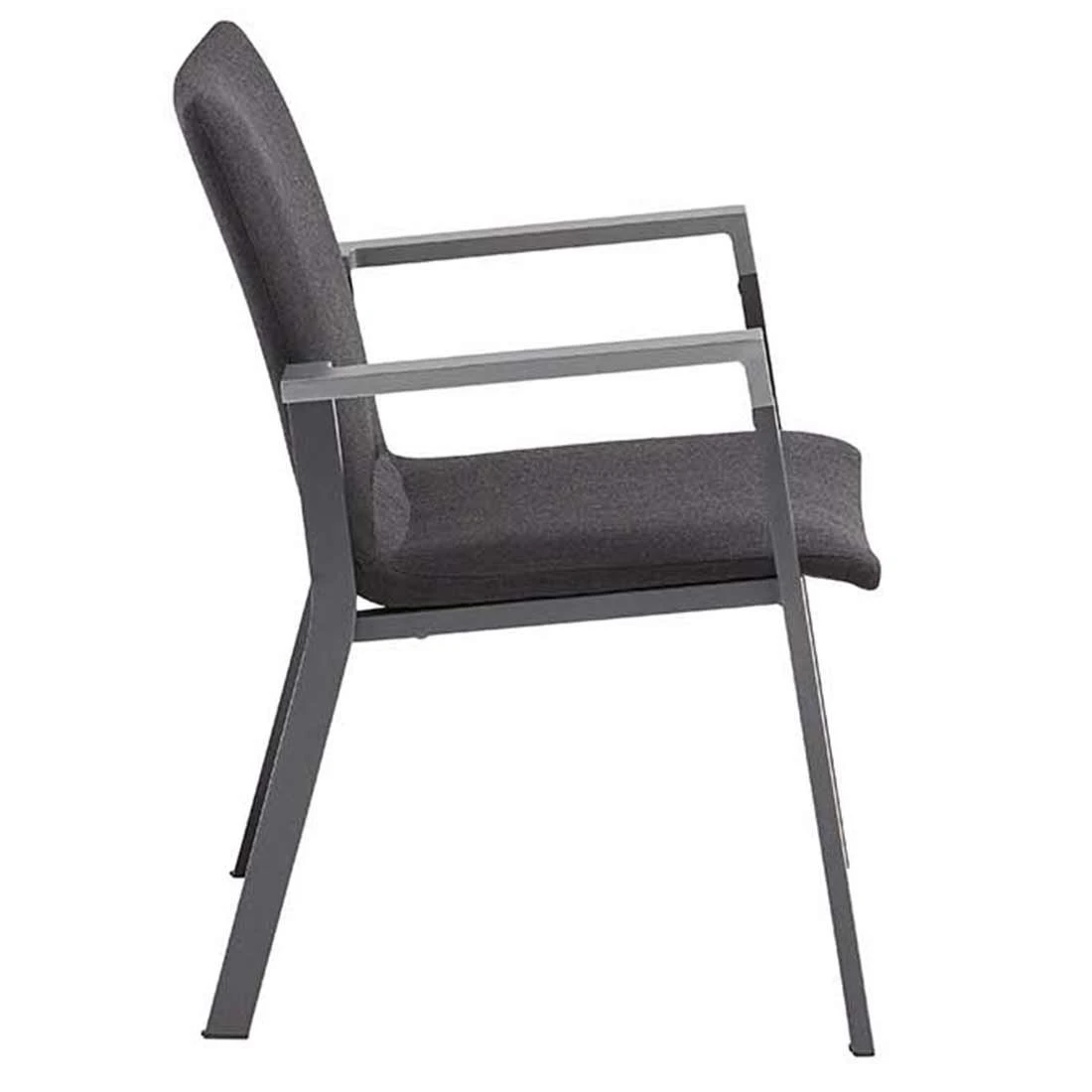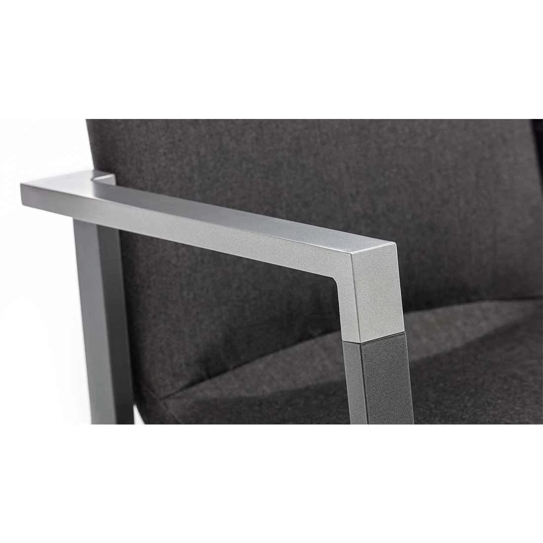 Für die Herstellung des Gestells wird hochwertiges und wetterfestes Aluminium verwendet. Für eine attraktive Optik ist das Gestell im Farbton Anthrazit gehalten. Für die Bespannung der Sitzfläche wurde ein besonders hochwertiger Sunbrella-Stoff gewählt. Er zeichnet sich durch besonders hohe Robustheit gegenüber Hitze und Frost aus und ist leicht zu reinigen. Die Sitzfläche hat eine schöne Farbgebung in Sooty.
